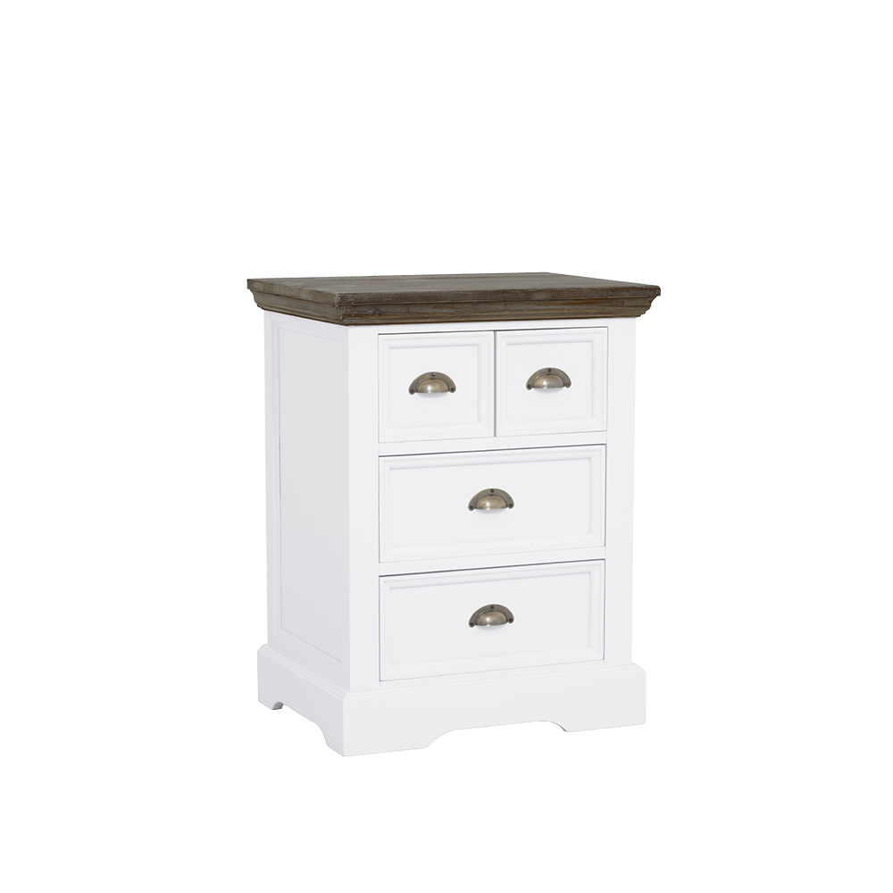 Deze prachtige ladekast, met een afmeting van 56 cm breed, is vervaardigd uit robuust grenenhout en afgewerkt in een frisse, witte lak. De vier soepel lopende laden bieden een zee aan opbergmogelijkheden. Hoewel u hier de populaire witte variant ziet, is de Fleur serie ook beschikbaar in een prachtige grenen/bruine beits, zodat u altijd een kast vindt die perfect bij uw bestaande interieur past.