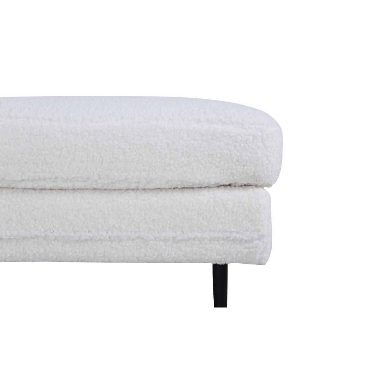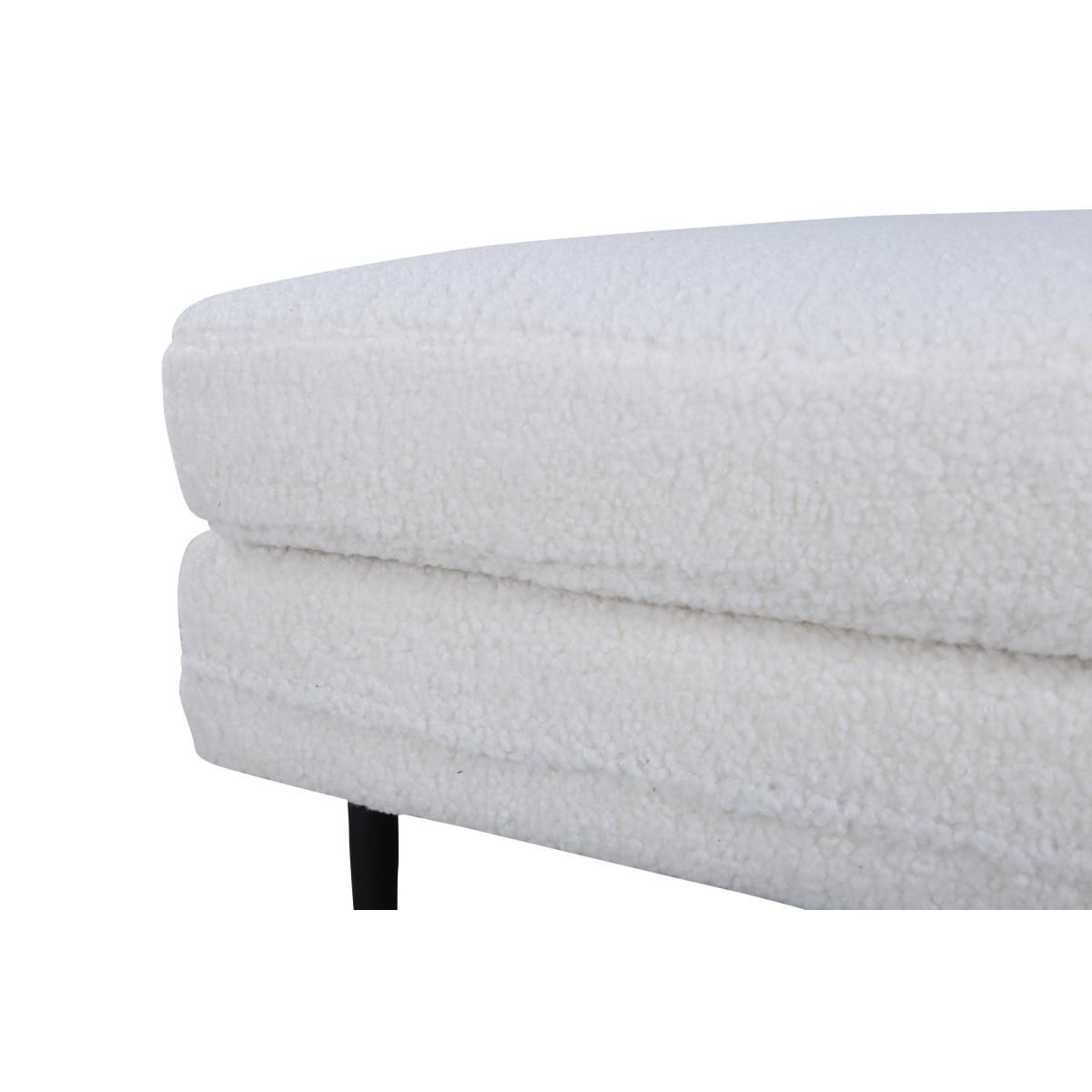 De Kira hocker - teddy - wit is een veelzijdig meubelstuk dat een vleugje elegantie toevoegt aan elke ruimte. Met een robuuste constructie biedt deze hocker niet alleen stijl maar ook duurzaamheid. De zachte bekleding zorgt voor een comfortabele zitervaring, ideaal voor zowel ontspannen momenten als voor gebruik als extra zitplaats bij bezoek.