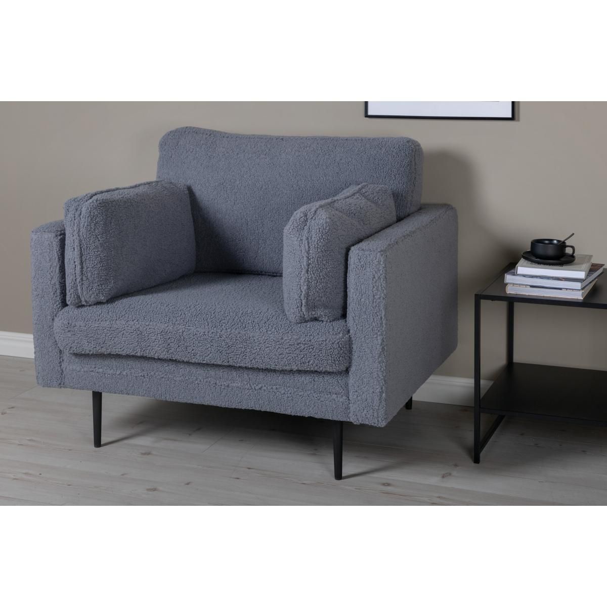 Deze Kiva fauteuil is bekleed met een zachte teddy stof in een elegante donkergrijze kleur. Het eigentijdse ontwerp maakt de Kiva fauteuil tot een stijlvolle toevoeging aan uw woonruimte.