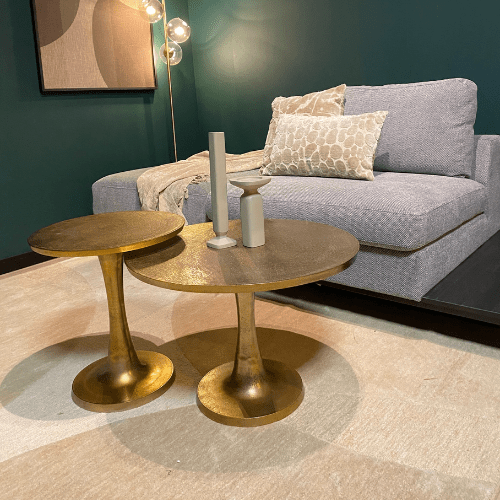 De Salontafel Amara Low van Starfurn is een stijlvolle en functionele toevoeging aan elke woonkamer. Gemaakt van aluminium, is de tafel afgewerkt met een antiek gouden finish, wat een klassieke en elegante uitstraling geeft.