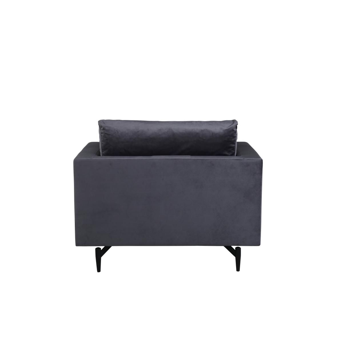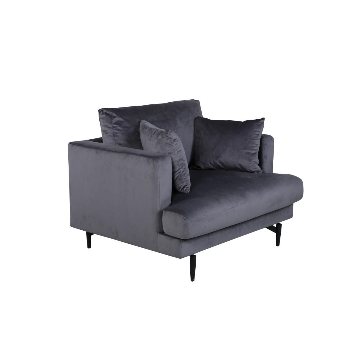 Deze Ruma fauteuil is gemaakt van fluweel en heeft een elegante donkergrijze kleur. Het verfijnde ontwerp maakt Ruma tot een stijlvolle toevoeging aan uw woonruimte of kantooromgeving.