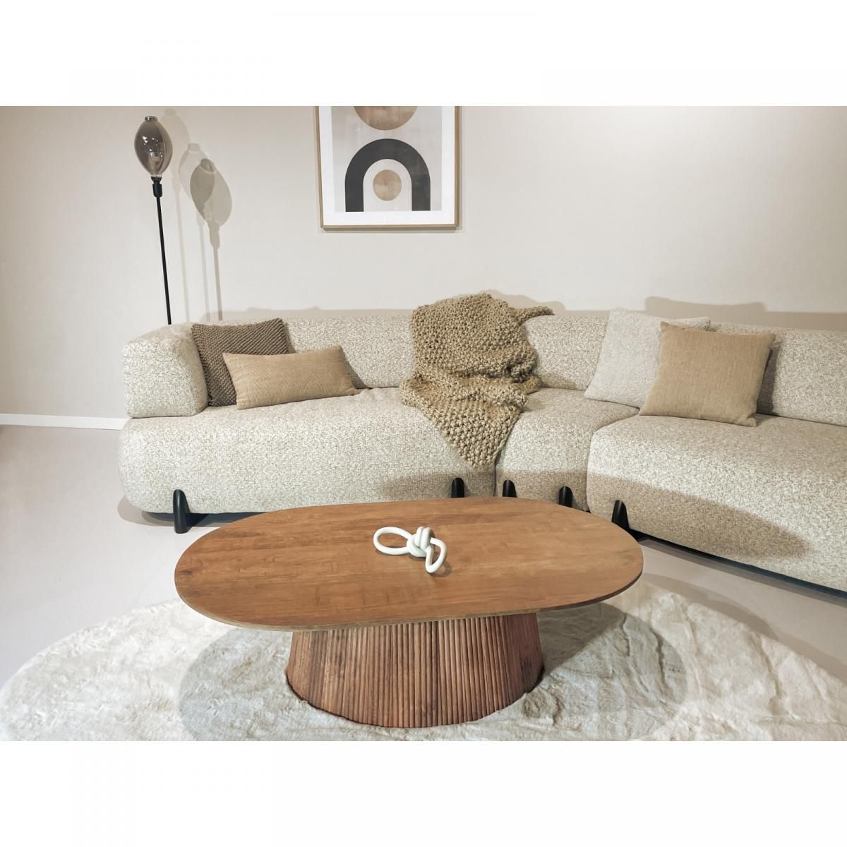 De Salvator ovale salontafel - 120 cm - hout, een prachtig stuk uit de populaire 'Salvator' serie van het gerenommeerde woonmerk Livingfurn. Deze salontafel is een ware blikvanger in elke woonruimte. Wat deze tafel zo bijzonder maakt, is het adembenemende onderstel. Het is volledig afgesloten en heeft een subtiel ribbeleffect, dat naadloos aansluit op het tafelblad. Dit geeft de tafel een moderne en abstracte uitstraling, waardoor het een ware eyecatcher wordt in jouw interieur. Gemaakt van hoogwaardig hout, straalt de Salvator salontafel een warme en uitnodigende sfeer uit. De prachtige houtnerf voegt een natuurlijke charme toe aan het geheel. De tafel is verkrijgbaar in twee tijdloze kleuren: naturel en bruin. Hierdoor kun je de tafel perfect afstemmen op jouw persoonlijke stijl en interieur. Deze veelzijdige salontafel past moeiteloos bij verschillende woonstijlen. Of je nu een modern, industrieel, Scandinavisch of klassiek interieur hebt, de Salvator ovale salontafel voegt direct een vleugje elegantie en stijl toe aan elke ruimte. Het is de perfecte aanvulling voor gezellige gesprekken met vrienden en familie of om je favoriete decoratieve items tentoon te stellen. Om de Salvator salontafel op zijn mooist te presenteren, kun je hem combineren met een luxueus vloerkleed en enkele sierlijke decoratieve objecten. Plaats een elegante vaas met bloemen in het midden van de tafel of een stijlvolle dienblad met kaarsen en boeken. Laat je creativiteit de vrije loop en creëer een verfijnde en gezellige sfeer rondom deze prachtige salontafel. Bekijk ook de rest van de 'Salvator' serie op onze website.