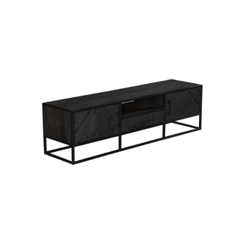 Deze stijlvolle tv meubel New York van Starfurn is een must-have voor elke moderne woonkamer. Het meubel is gemaakt van hoogkwalitatief gezandstraald mangohout en heeft een metalen frame en handgrepen afgewerkt met een zwarte lak.